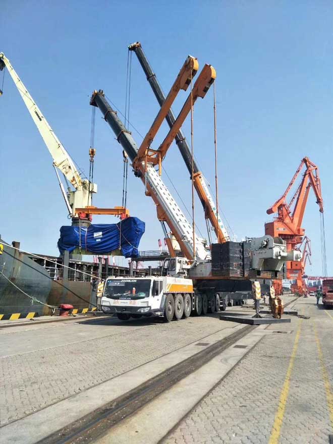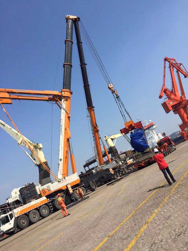 當前位置:首頁 » 工程案例展示 » 500噸吊車助力青島港設備搬運裝卸施工現場